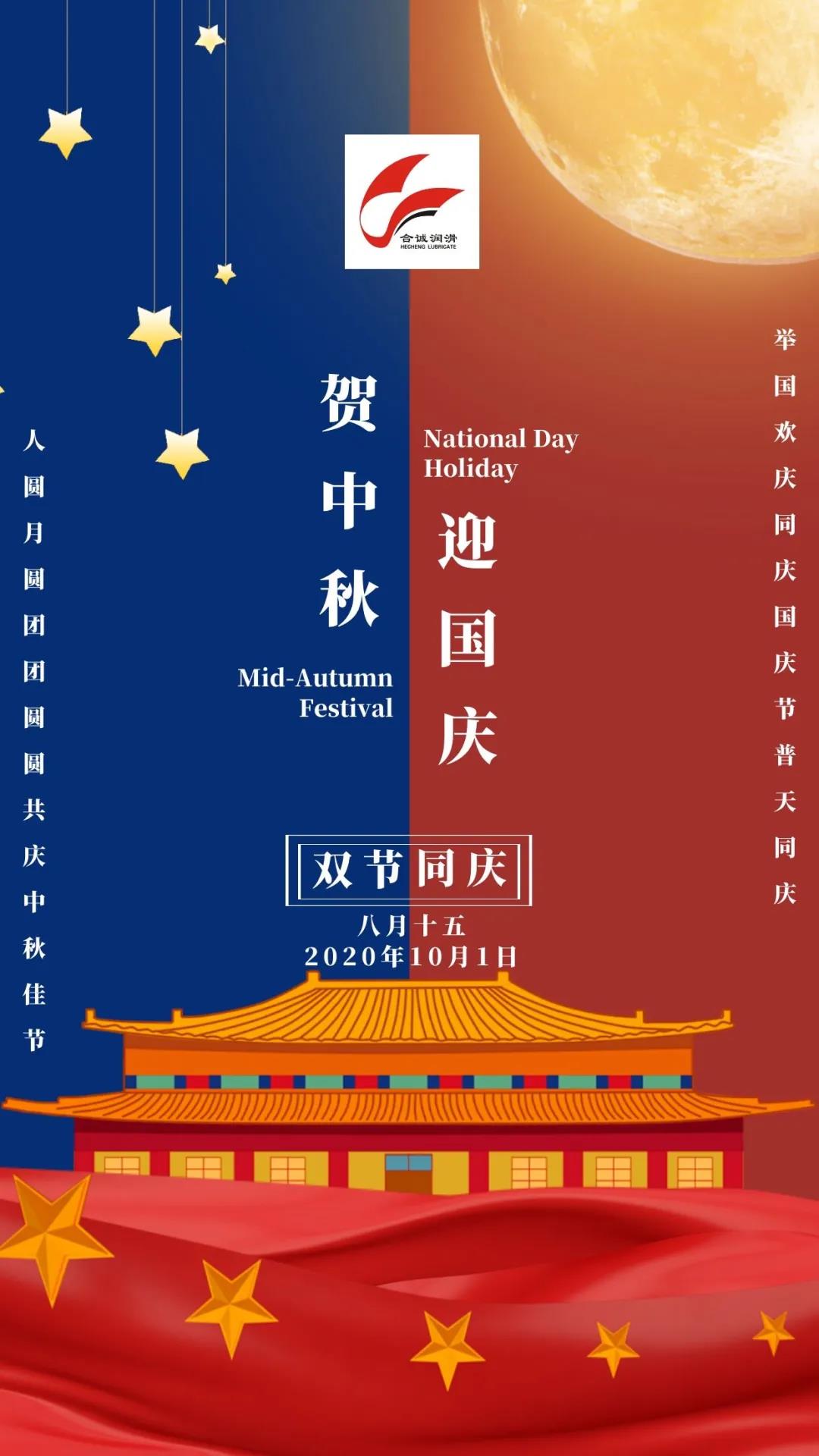國(guó)是家的港灣,家是人的歸屬。在這個(gè)舉家團(tuán)圓的日子里,我們迎來(lái)了祖國(guó)71歲華誕!在國(guó)慶和中秋雙節(jié)到來(lái)之際,深圳合誠(chéng)全體員工祝愿祖國(guó)繁榮昌盛!祝福大家好事成雙,月滿人滿,盆滿缽滿,節(jié)日快樂!
