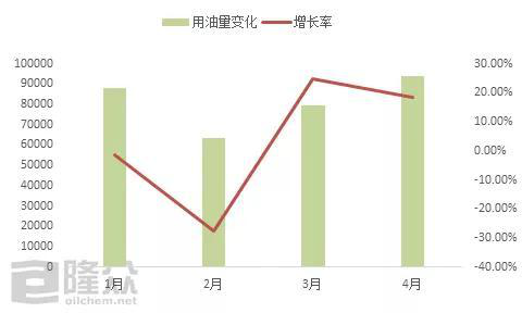 4月齒輪油訂單量308.6噸、潤(rùn)滑脂訂單量218.1噸、其他工業(yè)潤(rùn)滑油212.6噸、液壓油155.9噸、其他車(chē)用潤(rùn)滑油61.6噸、防凍液18.8噸。