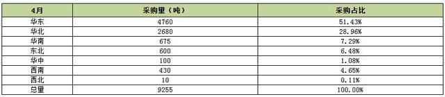 國(guó)內(nèi)潤(rùn)滑油市場(chǎng)疫情過(guò)后需求逐漸恢復(fù),4月車(chē)用潤(rùn)滑油和工業(yè)潤(rùn)滑油需求出現(xiàn)明顯增加,大中型潤(rùn)滑油工廠庫(kù)存量也逐漸消化完畢,進(jìn)入補(bǔ)貨周期,使得4月份基礎(chǔ)油市場(chǎng)價(jià)格出現(xiàn)大幅上揚(yáng),漲幅累計(jì)在300-400元/噸左右。隆眾電話調(diào)研的下游109家潤(rùn)滑油工廠的生產(chǎn)情況來(lái)看,4月份潤(rùn)滑油工廠全面復(fù)工,用油量達(dá)到94170噸,相較于3月份環(huán)比增加18.53%。其中,有81家完成了采購(gòu),采購(gòu)總量達(dá)9255噸。采購(gòu)量大的以華東、華北為主,分別占比51.43%、28.96%。